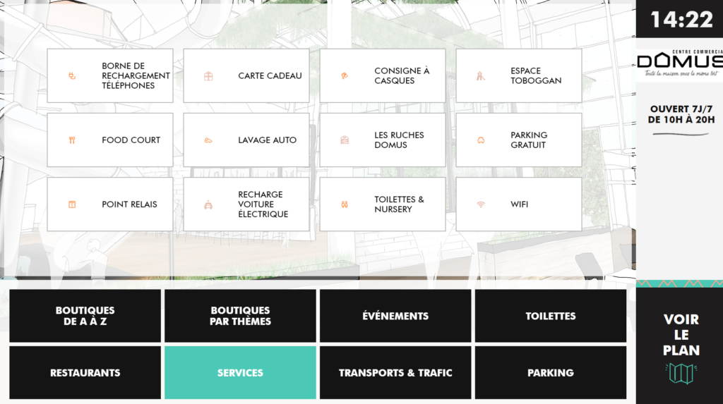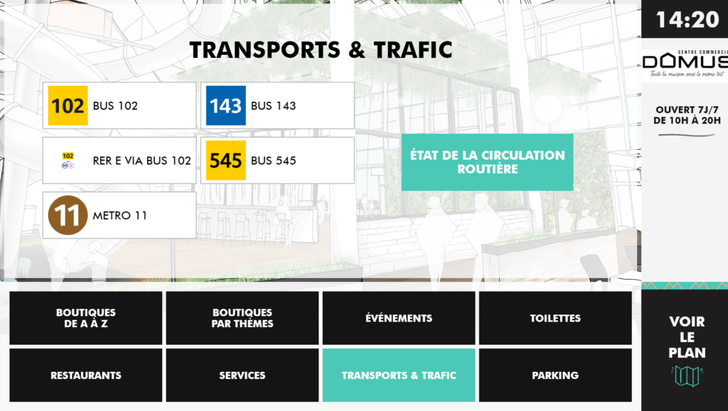 Located in Rosny-sous-Bois, in the Île-de-France region, the Domus shopping center has renewed its trust in ViaDirect after more than 8 years of collaboration. As a result, the mall has upgraded the design of its six digital wayfinding kiosks to further enhance the overall digital experience.