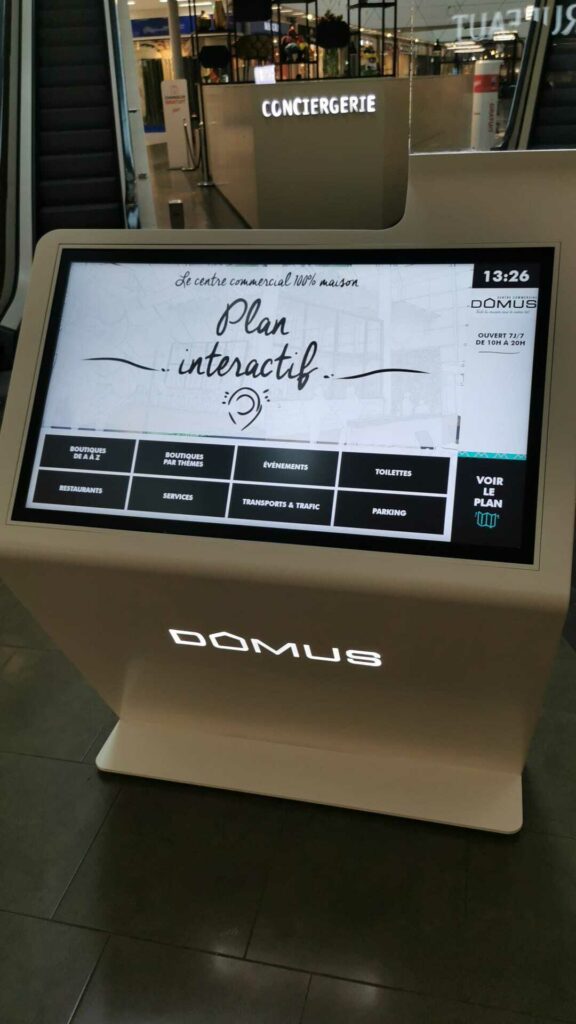 Back in 2015, under the management of Accessite, Domus selected six multi-screen digital wayfinding kiosks (ViaDirect Pelikan model). At the time, the objective was clear: help visitors easily navigate the mall while accessing essential information. As a result, these interactive terminals quickly became a key tool for improving orientation and overall visitor satisfaction.